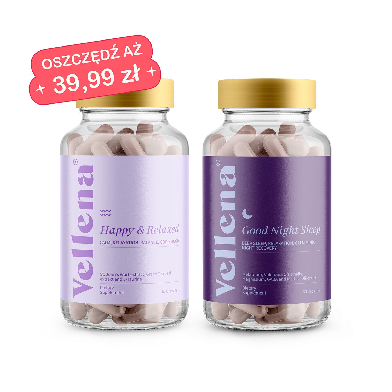 Dobry nastrój + Spokojny sen | Kapsułki 2-MIX | Vellena